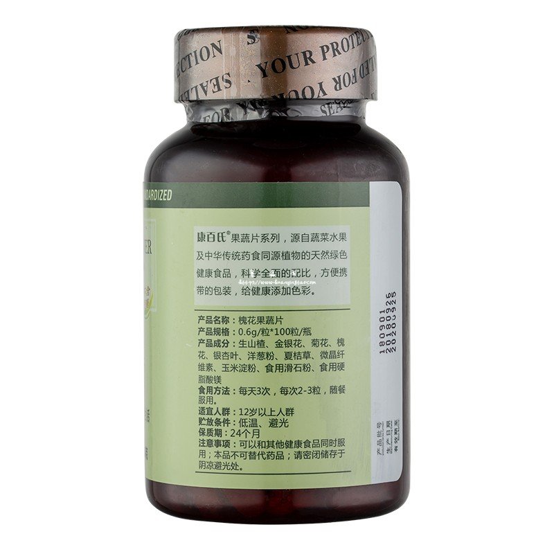 康百氏 槐花果蔬片 成分:槐花、夏枯草、生山楂等药食同源植物。 作用类别:平稳血压、降脂。 用法用量:每次 2-3 片、每日三次。 禁忌:无不良反应。 保质期: 24 个月 净含量 :...