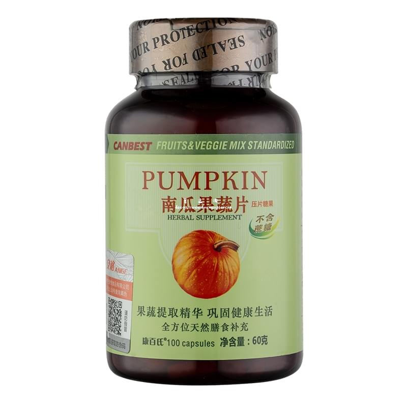 康百氏南瓜果蔬片 成分:南瓜、桑叶、鲜菇、野葛等药食同源植物。 作用类别:降血糖、清脂。 用法用量:每次 3-4 片、每日 3 次。 保质期: 24 个月 净含量 : 60g (100 片※ 0.6g/ 片...