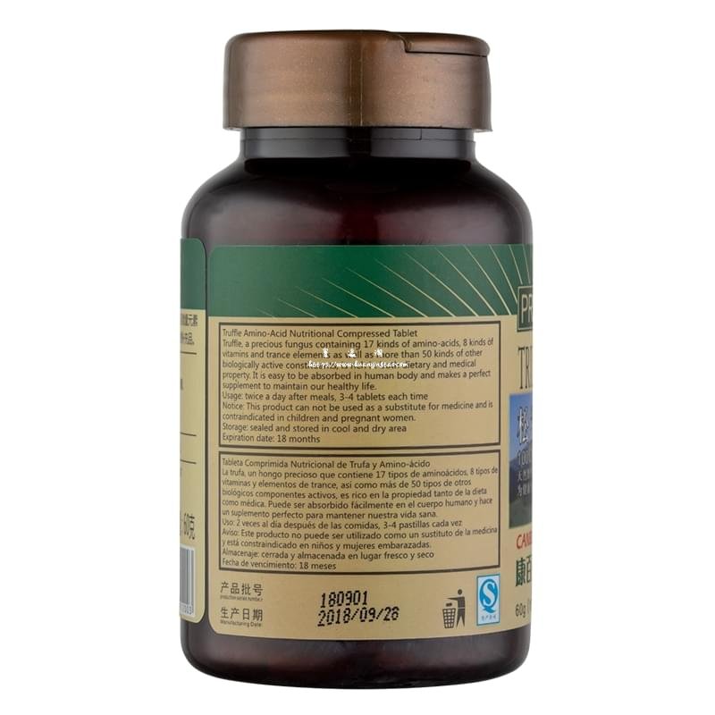 康百氏松露 ( 压片糖果 ) 松露是珍贵的食、药兼用菌,富含 17 种氨基酸、 8 种维生素及微量元素等 50 余种生理活性成分,易被人体吸收,是健康生活的理想补充品。 配料:松露、复合...