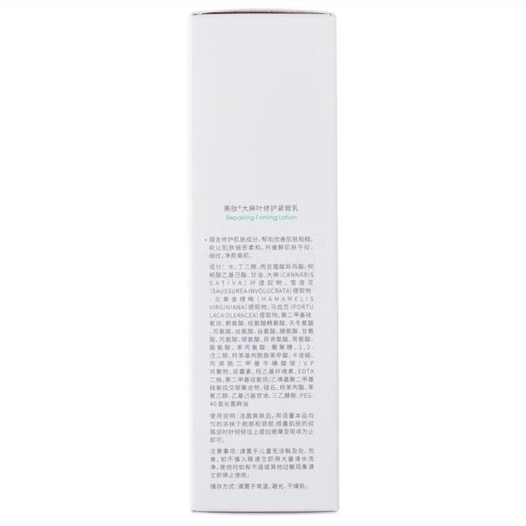 美肽大麻叶极致CBD修护系列 美肽大麻叶修护紧致乳 产品说明: 蕴含修护肌肤成分,帮助改善肌肤粗糙,能让肌肤细密柔和,并缓解肌肤干纹、细纹,净颜美肌. 使用说明:洁面爽肤后,用适量本品均匀地涂抹于脸部和颈部.顺着肌肤的纹路逆时针轻轻往上提拉按摩至吸收为止即可。 注意事项:请置于儿童无法触及处,勿食,如不慎入眼请立即用大量清水洗净. 使用时如有不适或其他过敏现象请立即停止使用。 储存方式:请置于常温、避光、干燥处。 广东雅姿精化有限公司 生产许可证:粤妆20160837 执行标准号:GB/T 29665 (O/W) 合格 生产批号及限期使用日期见包装所示 净含量:60ml 条码:69562621 0 0 60 零售价:¥328.00元 支持批发。...