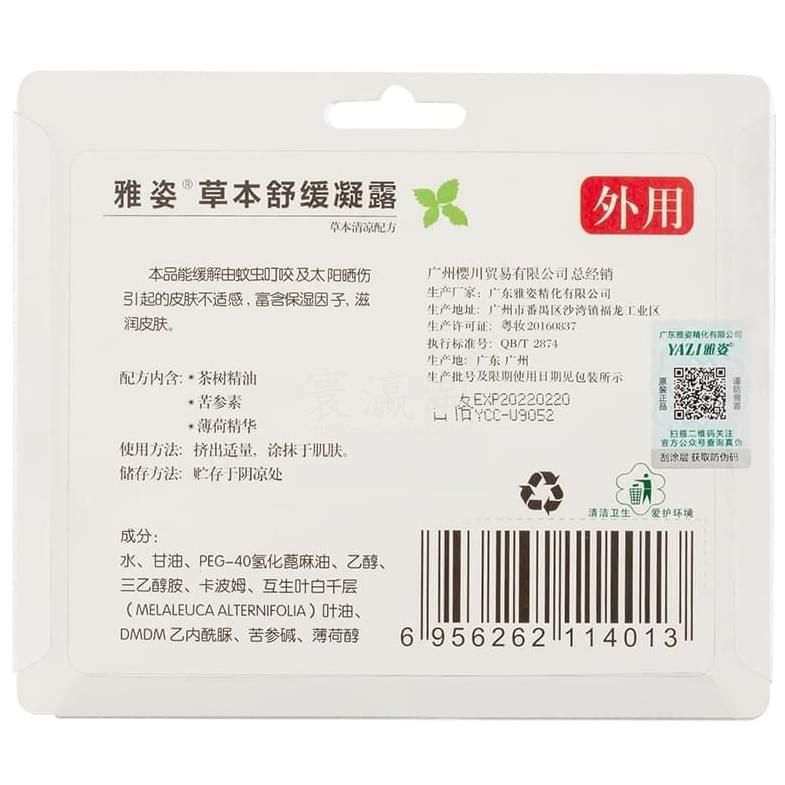雅姿草本舒缓凝露 小分子结构的膏体组织迅速渗入,快速解除蚊叮虫咬、红疹、皮肤干燥及太阳晒伤引起的皮肤瘙痒,并持久发挥止痒作用! 富含保湿因子,滋润皮肤,止痒同时倍感清凉! 最新研究发现,草本舒缓凝露对老年人秋冬皮肤干痒症有较好疗效! 配方特含: 茶树精油——长久发挥止痒作用。 苦参——清热燥湿,消肿解毒。 薄荷精华——透心清凉感觉,直抵瘙痒根源。 积雪草——帮助消除蚊叮虫咬引起的红肿。 净含量:30g。 零售价:¥15.00元。 支持批发。...