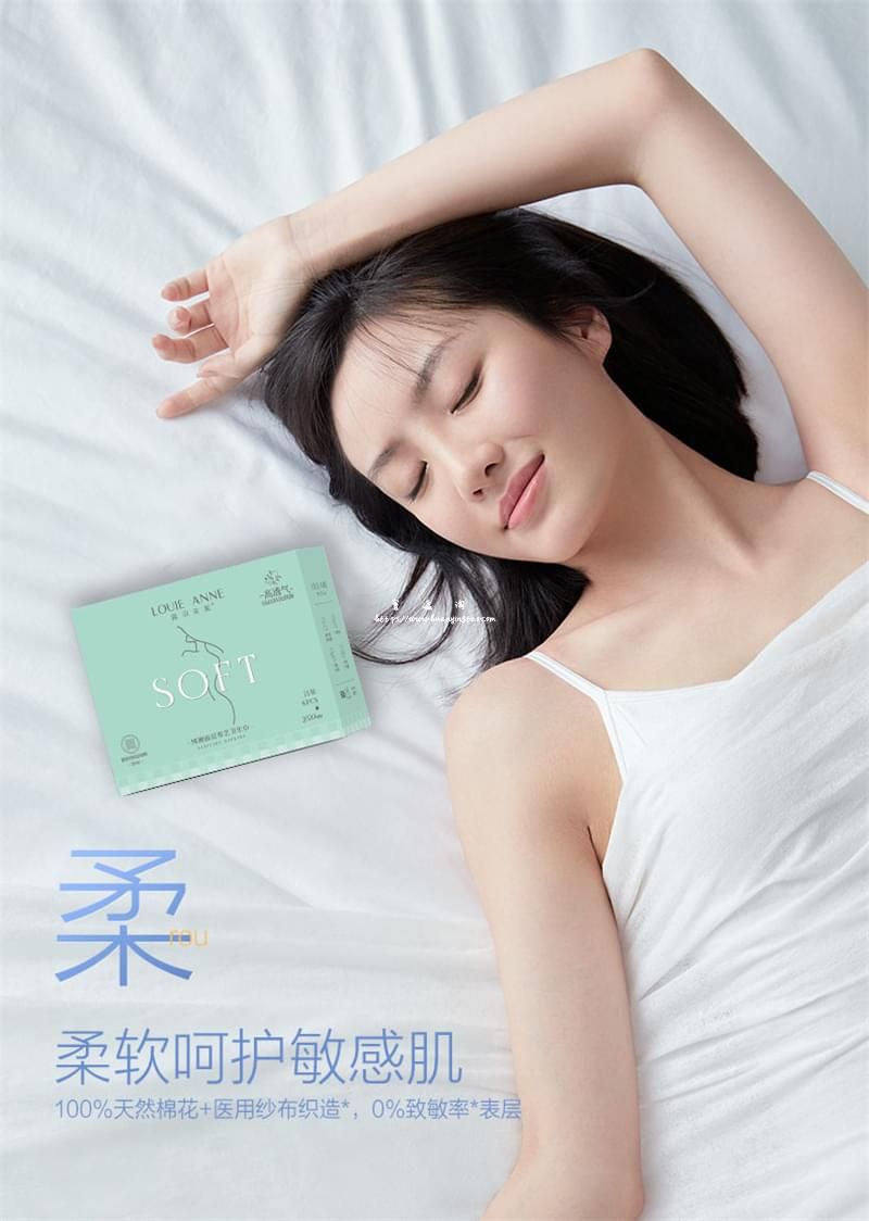 3、高透气——纯棉面层布艺纱布卫生巾实现立体持久透气与防漏完美结合,轻薄无感设计,全方位锁住液体,告别闷湿热,减少细菌滋生。