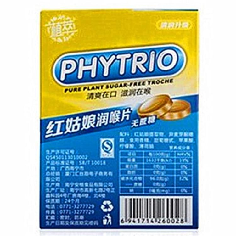 康百氏植萃·红姑娘润喉片 宣传语:清爽在口 滋润在喉 内含独有配方,清热去火,舒喉润嗓。 配料:红姑娘提取物、异麦芽酮糖醇、食用香精、甜菊糖苷、苹果酸、柠檬酸、薄荷脑 产品简介:红姑娘学名酸浆,系长白山特产,成熟果实富含有维生素和苦素。 本品系以红姑娘为主要原料,用甜菊糖苷等无糖原料为基料,配以异麦芽酮糖醇、苹果酸、柠檬酸、薄荷脑等,经现代工艺精制而成的口服含片。 清热去火、清爽滋润、帮助防蛀、舒喉润嗓、清热利咽、润喉清音、化痰、利尿、提神解酒、散瘀止痛有一定的帮助。 适宜人群:咽部不适者、急慢性咽炎者、用嗓过多者;男女老幼,四季皆宜;适合夜总会、KTV、美容、酒楼、学校、旅游、司机等易患咽炎行业使用;无糖型更加备受糖尿病者、减肥人士及爱美女性的青睐。 服用方法:含服,每次1—2粒,每天多次或随意。 其他说明:糖尿病患者以及减肥人士请用本产品无糖型。 保质期:24个月。 净含量:19.2g。 零售价:¥12.00元。 支持批发。...
