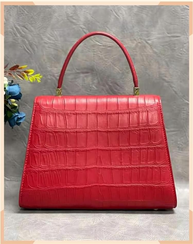 鳄鱼肚皮手提包、配长肩带、大容量.
