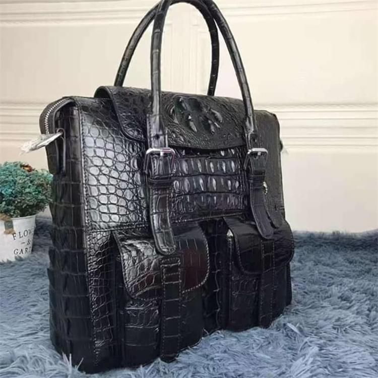 秾福稀有皮高端包包定制#8004 鳄鱼骨皮男士休闲公文包 手提包,可单肩。 规格:32X31X13 支持:小牛皮、羊皮内里定制。 支持:全钢五金、蜡线缝制工艺定制。 支持:鳄鱼皮、蟒蛇皮、鸵鸟皮、蜥蜴皮、珍珠鱼皮定制。 支持:黑色、咖色、紫色、黄色、灰色、喜马拉雅白等等多种擦色定制。...