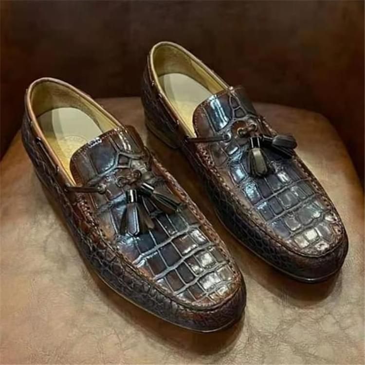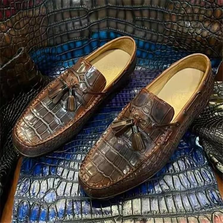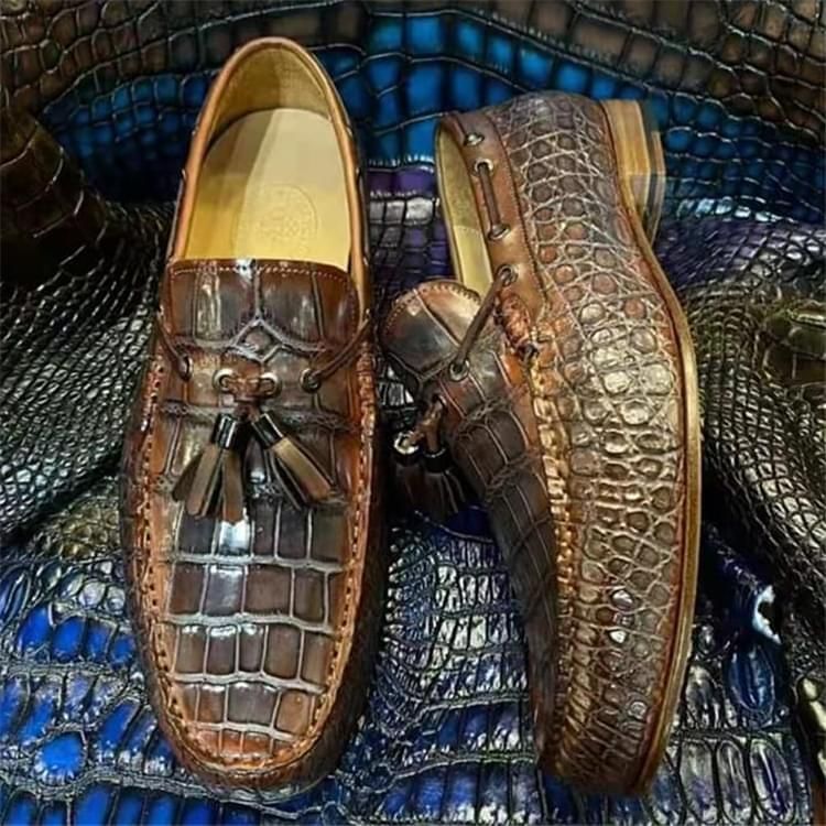 秾福稀有皮高端男鞋定制#8051 支持:固特异工艺制作定制。 女款支持:34-35-36-37-38-39码定制。 男款支持:38-39-40-41-42-43-44码定制。 支持:小牛皮、羊皮和其他皮毛一体内里定制。 支持:牛皮底、XL底、飞机轮底等材质鞋底定制。 支持:黑色、咖色、灰色、喜马拉雅白等多种擦色定制。 支持:鳄鱼皮、蟒蛇皮、鸵鸟皮、蜥蜴皮、珍珠鱼皮定制。...