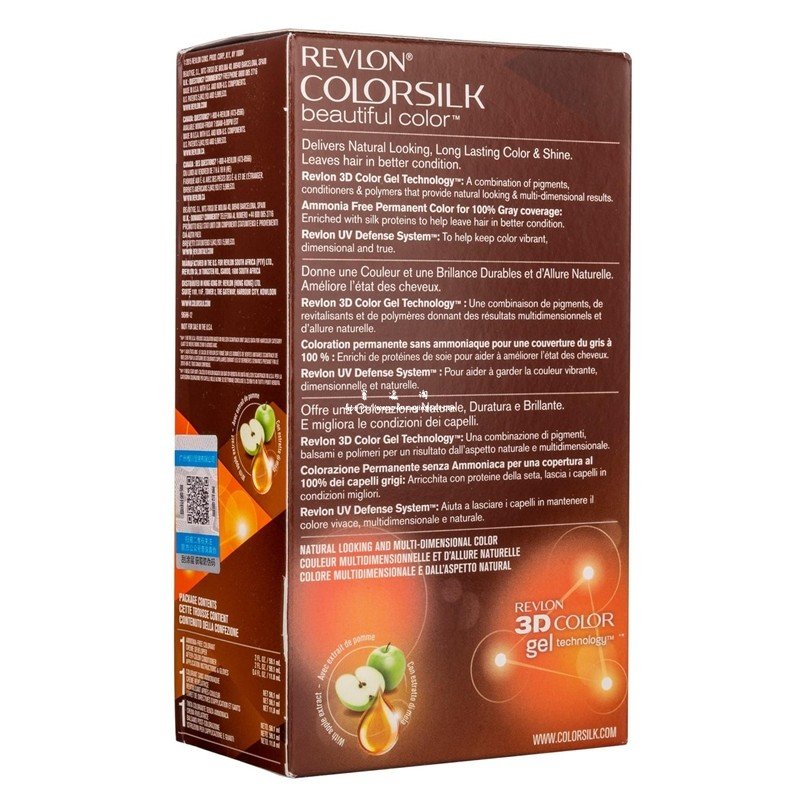 Revlon® 露华浓 丽然染发剂 采用 3D 三维颜色科技,配以特制的混合染料,护发素和聚合物,为头发提供自然,亮丽颜色,令秀发更具层次感,更立体。效果:发色完全改变,自然,亮丽立体有光泽。 不含阿摩尼亚,性质温和。丝质蛋白、苹果萃取物深入渗透每条发丝,令染后发质更柔滑、健康、亮丽,发质比染发前更好。