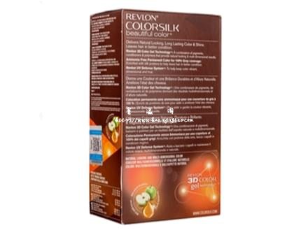 Revlon® 露华浓 丽然染发剂 采用 3D 三维颜色科技,配以特制的混合染料,护发素和聚合物,为头发提供自然,亮丽颜色,令秀发更具层次感,更立体。效果:发色完全改变,自然,亮丽立体有光泽。 不含阿摩尼亚,性质温和。丝质蛋白、苹果萃取物深入渗透每条发丝,令染后发质更柔滑、健康、亮丽,发质比染发前更好。