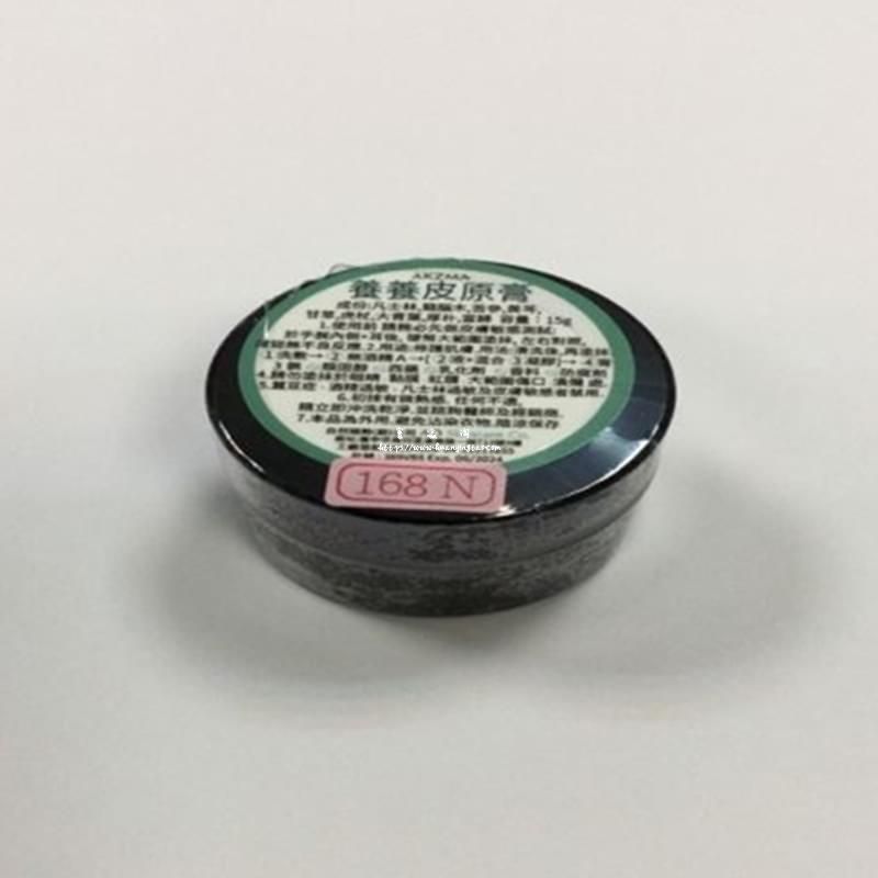 168N皮原膏-15g 成份 : 紫草(166x3)、黄柏、苦参、黄芩、虎杖(166x3)、甘草、白柳皮、白芷(166x3)、龙脑木(166x2) 消炎抗菌的作用较强 适应症: 干癣、 AD 钱币状皮疹、掌跖脓疱症、手脚湿疹、 头部湿疹、脱发等 通常先用: 159 、 150或 161 ;每天 3~ 多次; 皮肤皲裂处: 168N+皮原膏 除脸及白雪公主不用外,尤其是男性使用效果好,又不怕留下黑迹,若是有也在几星期内定褪去。 手脚汗疱疹丶干癣超好用! 若是有糜烂伤口,先皮原液一批原膏一168N 若是有脱屑者,先皮原液一168N一批原膏 零售价:172.00元。 支持批发。...