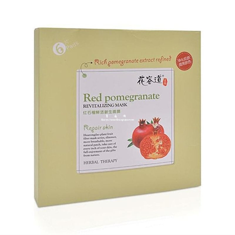 花容道系列 花容道红石榴鲜活新生面膜 保加利亚野生玫瑰花瓣精粹。 净化肌肤 提亮肤色 成分:去离子水、甘油、 β- 葡聚糖、藻提取物、丁二醇和稻( ORYZA SATIVA )提取物、 EDTA 二钠...