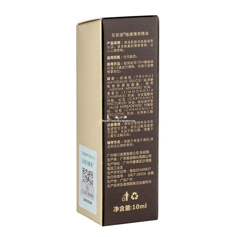 花容道系列 花容道植臻薄荷精油 产品说明 : 清洁肌肤令肌肤柔软水润。清凉刺鼻的薄荷香氛,让人心情舒畅。 适用范围:任何肤质。 使用方法:使用前向 10ml 基础油内滴入 5 滴进行稀...