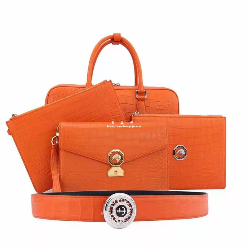 秾福鳄鱼皮包包 #8039秾福高端定制尼罗雾面套装腰带、公文包