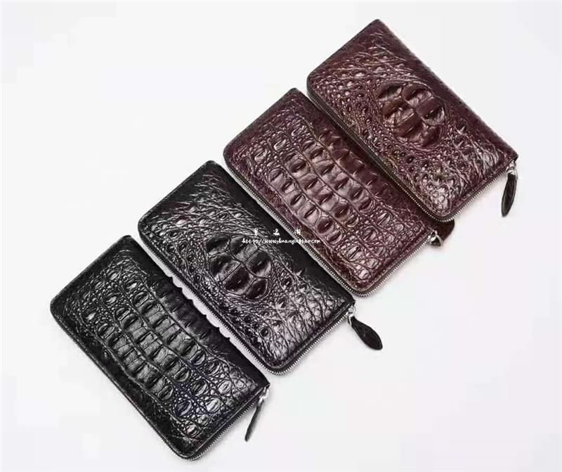 秾福鳄鱼皮包包 #8025 秾福高端定制 鳄鱼头骨皮男士拉链手包 小号手包、钱包 单拉链 颜色:黑、咖 规格:25*14*9...