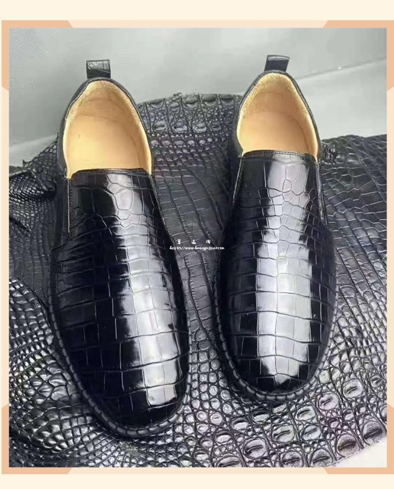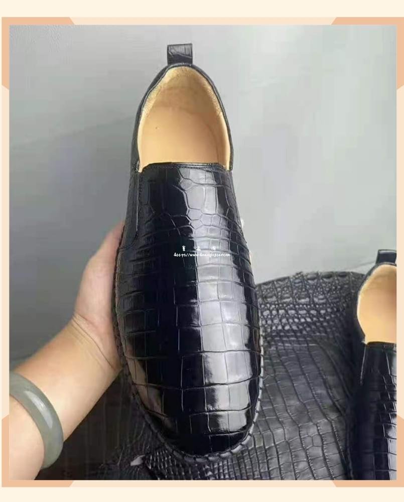 鞋面鳄鱼皮,鞋里牛皮,鞋底橡胶软底。