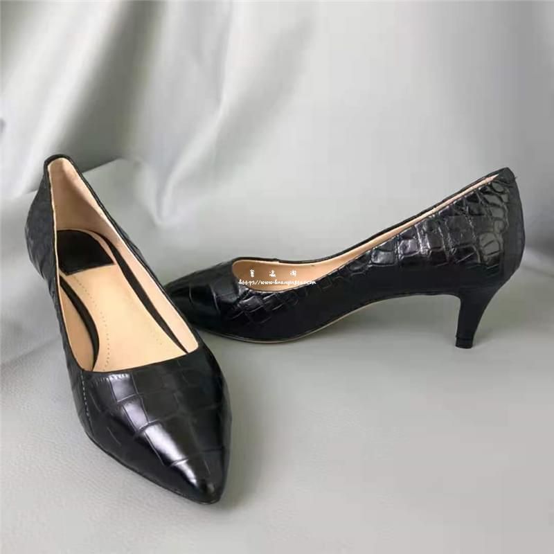 女士高跟鞋,鞋里牛皮,鞋垫上有一块小鳄鱼皮,鞋底真皮大底,鞋面全鳄鱼皮肚皮,经典百搭款。