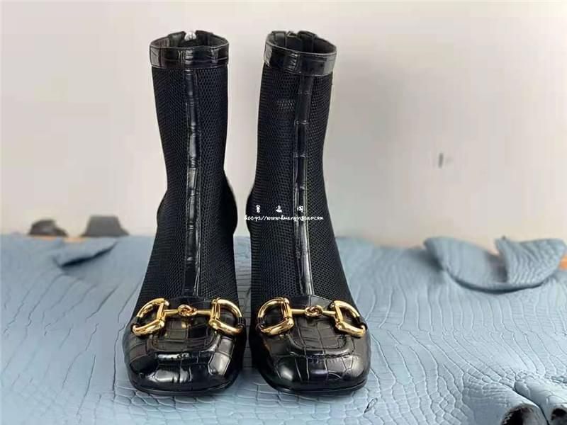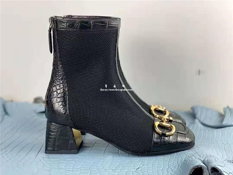 秾福鳄鱼皮女鞋 #8049 秾福高端定制 女士鳄鱼皮网布靴子 时尚大气 上脚透气舒适 夏季鞋柜必备款 支持35-39码定制...