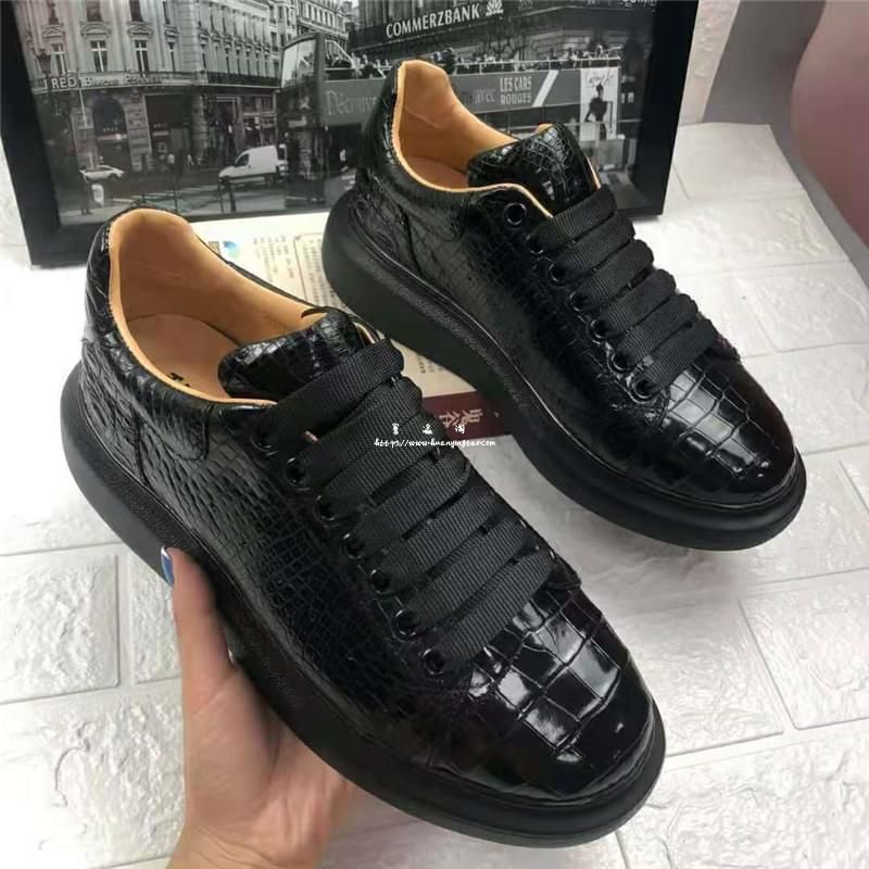 秾福鳄鱼皮男鞋 #8055秾福高端定制鳄鱼皮麦昆休闲鞋厚底系带款 支持38-44码定制